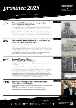 Na měsíc prosinec jsme pro vás připravili: 1.12. v pondělí prostřednictvím přednášky Denisy Vídeňské a cyklu Nedoceněné probereme téma Queer žen v období první republiky. 8.12. v témž cyklu nás profesor Martin Čapský seznámí s...