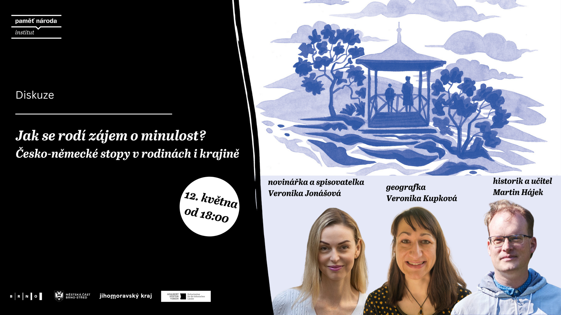 Hosty diskuse budou novinářka a spisovatelka Veronika Jonášová, kulturní a regionální geografka Veronika Kupková a historik a učitel dějepisu Martin Hájek.