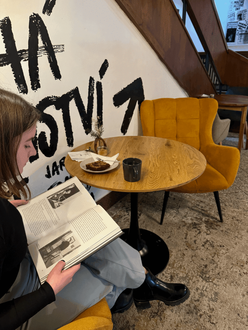 Prostor spojuje jednoduchý, přívětivý design s důrazem na pohodlí a komunitní atmosféru. Je vhodný pro krátkou zastávku během procházky po centru města i pro delší posezení s přáteli. V prvním patře jsou také coworkingové stoly, které nabízí klidné zázemí pro práci, studium nebo schůzky.