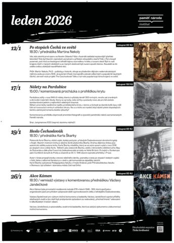 26.1. vernisáž s přednáškou o utajované Akci Kámen, provokační nezákonné akci STB. Vernisáží i přednáškou nás provede badatelka Václava Jandečková.