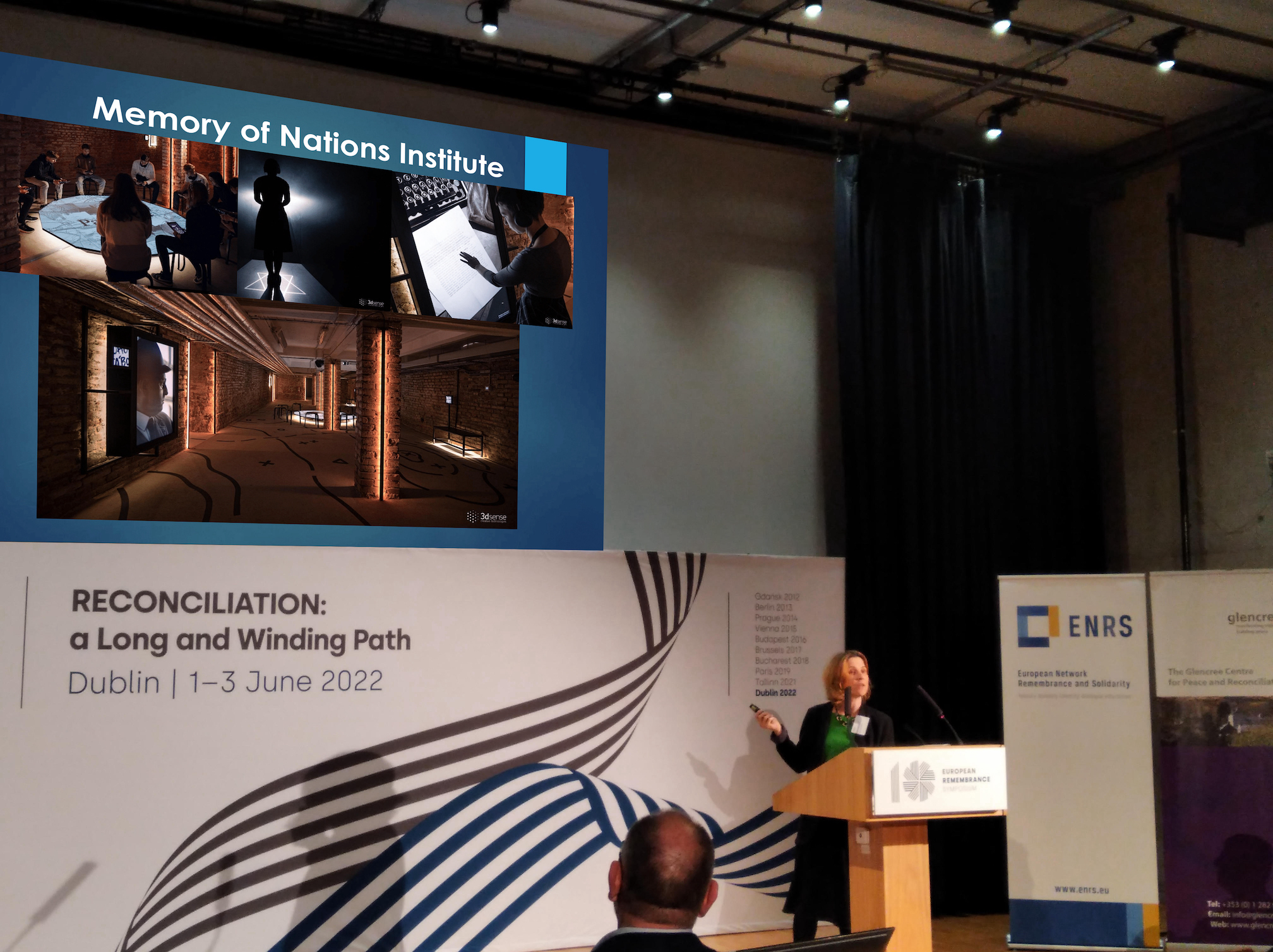 V rámci panelu případových studií „Cesty ke smíření – projektová praxe“ představila kolegyně Tamara Pomoriški divadelní projekty Paměti národa: Představení „Paměť jsme my.“ Tato představení pořádáme každoročně od roku 2019 v rámci mezinárodního projektu „Theatre of Remembrance“ ve spolupráci s partnery z Polska, ČR, Slovenska, Německa, Nizozemska, Maďarska, Itálie a Litvy.
